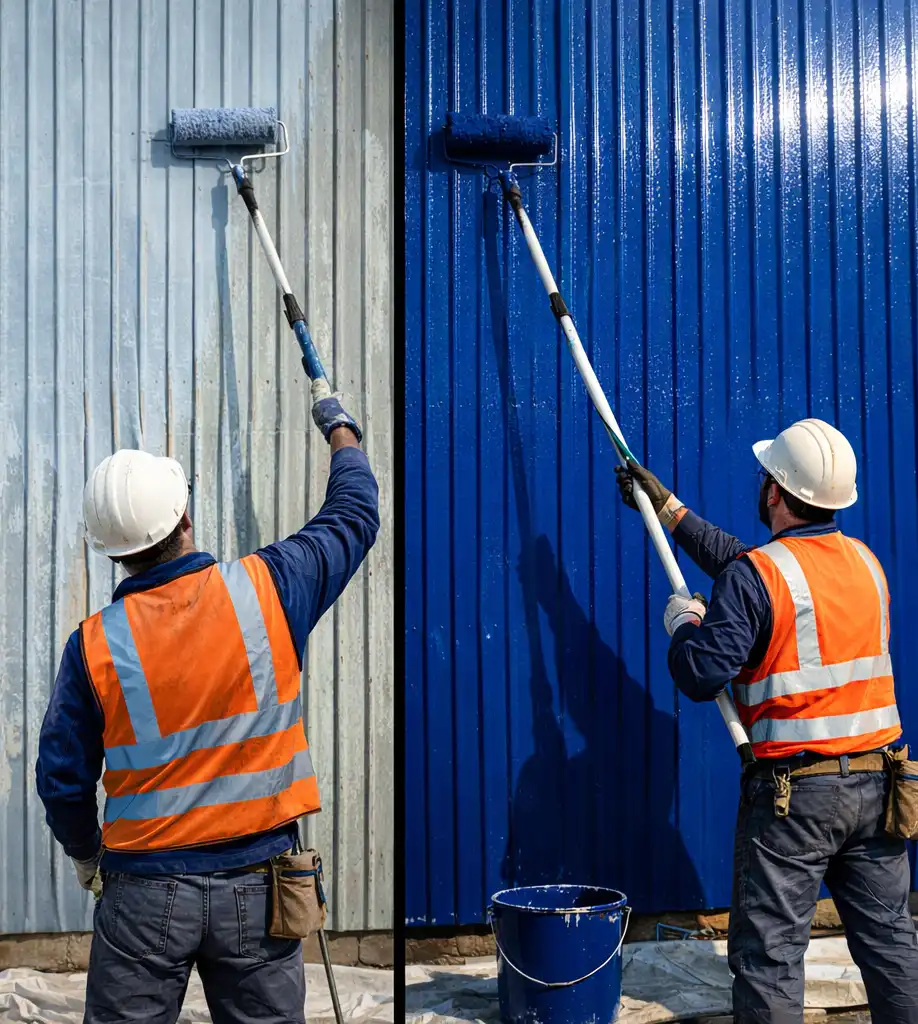 Le rouleau présente un second avantage décisif : la pénétration dans les micro-défauts du support. Les bardages métalliques de plus de 10 ans présentent toujours des micro-fissures dans l'ancien revêtement. Le rouleau, par pression mécanique, force la peinture à s'infiltrer dans ces anfractuosités. Le pistolet, lui, les survole.