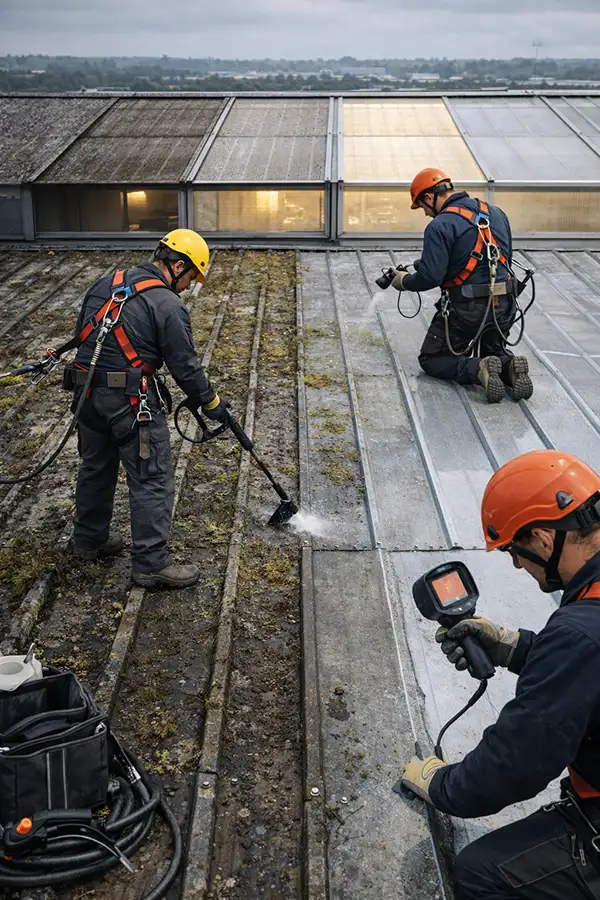 Démoussage et Maintenance de Toitures Industrielles au Mans :
